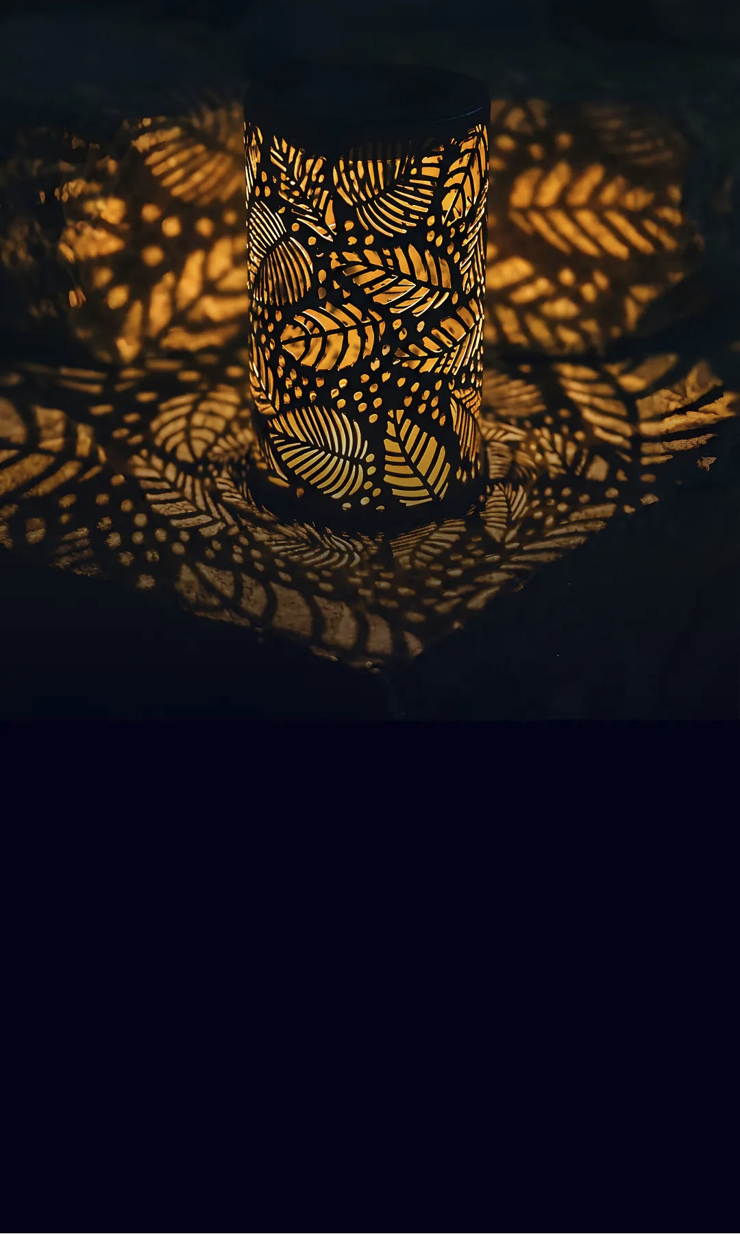 اكتشف مجموعة فوانيس تعمل بالطاقة الشمسية بتصميم فني راقي يضفي دفئًا وأناقة على حديقتك أو منزلك